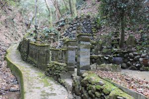 鳥居の横にはズラリと苔むした石像が並んでいる。『黒龍大神』『不動明王』の文字が掘られた石碑。修験道者や布袋らしき石像。